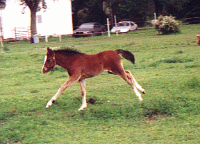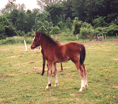 "Mae" is a sweet and very friendly little girl. (Thanks to my friend Katie Gillie for the barn name.) She has a beautiful head with ENORMOUS eyes (with the longest eyelashes we've ever seen!), a big blaze like her momma, and 4 flashy whites. She is an excellent mover too. I am really looking forward to bringing her out in the halter classes while we wait for her to grow up!
