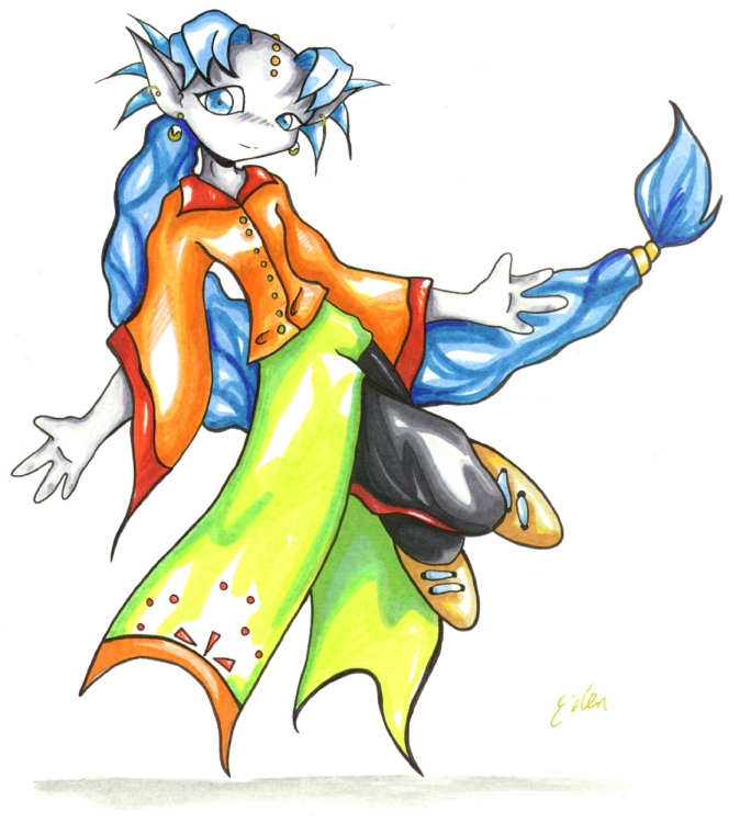 This is a trade picture with my new friend. She draws Aqum, I draw/drew Jen-Neko-Han. |