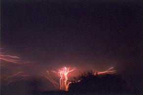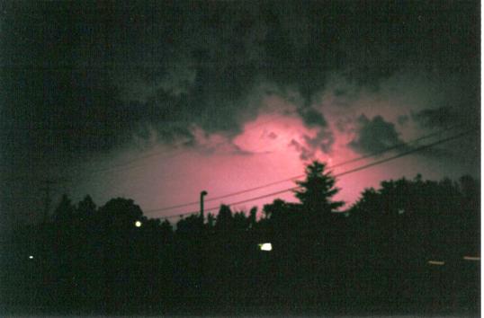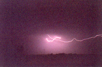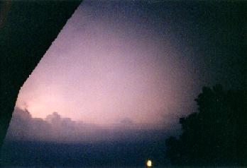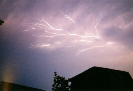 The following photos were taken by me. I took them using my C400 Kodak Advantix Camera. I used 400 speed film. Although, I would not waste as much film using a more professional camera, which I have, I find that it is much more rewarding to concentrate on the storm, see what it's doing, learn about it, and then try to photograph it using the naked eye and reflexes. After all, a monkey can hold a shutter open while lightning flashes, but it takes concentration to go out there and push a button at just the right time. I asked that if you would like to use my pictures for any reason to please ask me first.