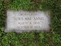 Lineage: Albert Evans Annis 1908-1979, James Leroy Annis 1848-1935, Joseph Annis, 1819-1888, Stephen Annis 1792-1828, Stephen Annis 1756-1840, Stephen Annis 1726-1792, Charles Annis 1694-1769, Abraham Annis 1668-1738, Cormac Annis 1638-1717Doris I. (Boone) Annis was the wife of Robert William Annis, Jr. (1916-1976)