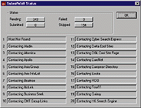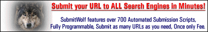 The number of engines supported by SubmitWolf can be increased by installing engine expansion packs, downloading user contributed scripts from our archive, you can even add your own search engine and free for all links into it by getting their submission strings. I have added over 60 engines and free for all links into my own program and still working on more. Just think, with all the search engines and free for all links pages out there, you can have thousands of engines in your program.