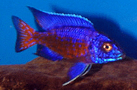 Jewel cichlid-Agressive african.Gets red when mad. Gray otherwise. (other African lakes, such as Victoria)