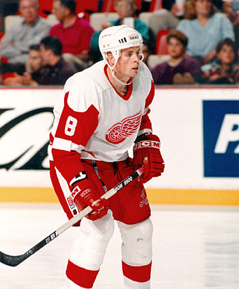 Defenseman Larry Murphy was traded to Detroit on March 18, 1997 for 'future considerations'.At age 36,Larry has much experience in the Nhl. Booed in Toronto, Scotty Bowman decided that he could be used here in Detroit, making it the second time Larry has played with Scotty as his coach. Larry came to Detroit just in time to get ready for the playoffs, in which he became an important player.