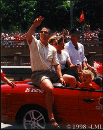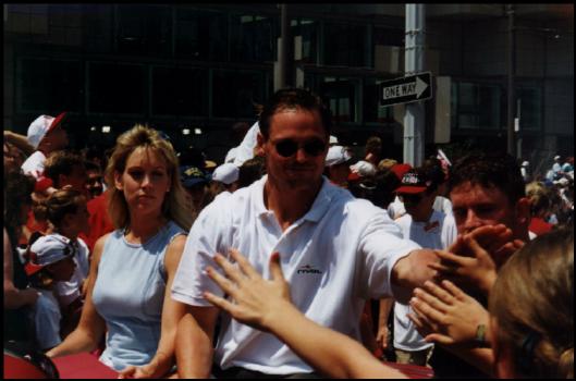 Grinder Joe Kocur is one of Detroit's remaining Bruiser Boys who enforce on the ice. Playing in a men's over 30 league at the begining of the 96-97 season, Joey rejoined the Wings after Christmas in 96. Previously Joe had played with the Rangers and had already won the cup."After we beat Colorado in the playoffs, Joey came up to me and whispered 'The next one's better' in my ear" said teamate Darren McCarty.Joe is a tough guy and has been named by many hockey fans as one of the best fighters of the league."Joey plays a bump and grind sytle, he's as tough as they come." said Teamate and fellow grind-liner Kirk Maltby. It's a good thing that joey came back just in time to win the cup.