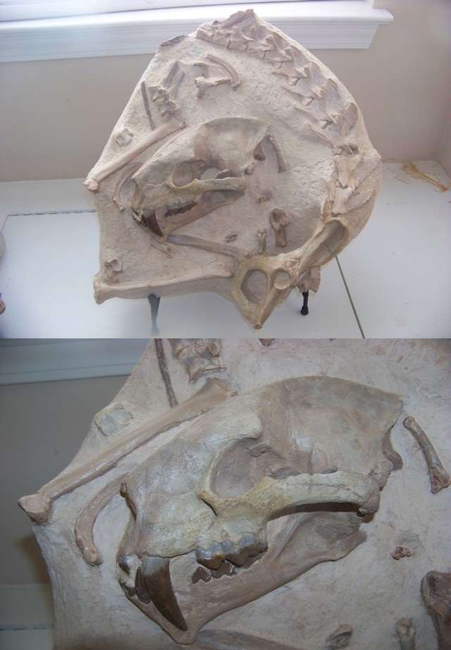 Hoplophoneus sp. Oligocene Epoch, Hoplophoneus was a medium-sized saber-toothed cat from the Badlands of Nebraska. This saber cat possessed a robust body with sharp saber teeth, or canine teeth, that it used to kill its prey. Its family, the Nimravids, would give rise to true cats, hyaenas, civets, and mongooses. For current price and photos please contact us. Sabertooth cat Hoplophoneus | |