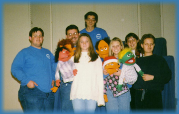This is a photo of the Puppet People during the Christmas Season right before I left on my Puppet Tour. When I came home, the troupe had lost a few puppeteers (due to school related activites), but gained almost double the amount of new puppeteers back. |