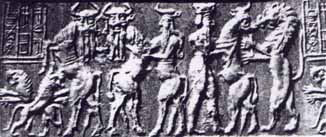 The scene depicts a Kish hero, lion rampant, bison, and other animals.