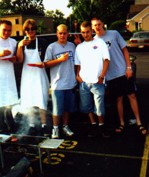 Here's some dudes I graduated with (Ben C., Bryan, Garrett, Derek, & Jon) having a bbq in the parking lot on or last day of high school!