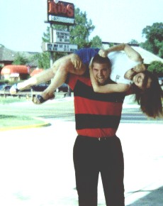 And here's J.J. giving me a torture rack at a gas station in Baton Rouge...and yes, I AM noogie-ing him! *giggle*