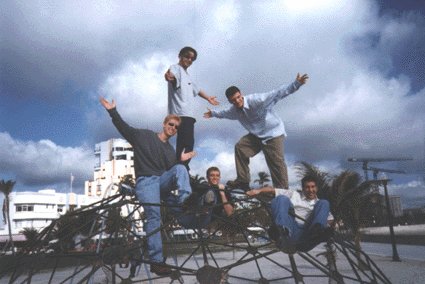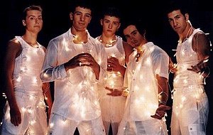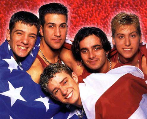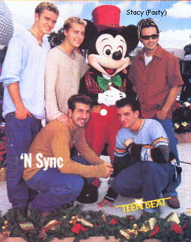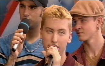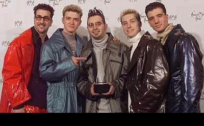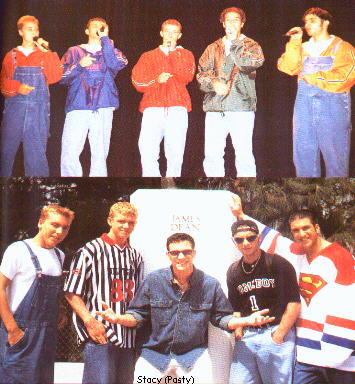 Top:'N Sync performing in Mannheim, Germany on Oct.1996. Bottom:Group visits James Dean Memorial.