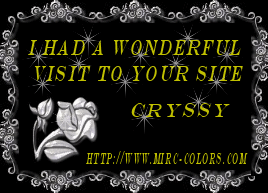 Name: Cryssy Website: Cryssysascii A description of your website: Ascii art, Songs, Poems, Memorial Pages & much more How did you find this website?: My shrink sent me here, said this was the place to be .... From: Nevada Time: 07/20/02 11:12:47 PM Comments: Great site, just love it, keep up the good work you do. I'll be back very soon...Cryssy ![]() |
