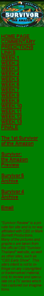 Commentary: Final Thoughts on "Survivor: the Amazon" Posted 05/16/03