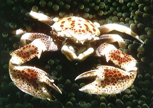 ANEMONE CRAB, Neopetrolisthes ohshimai, frequently found here.