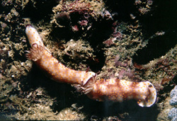 Above, Risbecia pulchella in the more usual "trailing" position, Muscat Bay, Oman