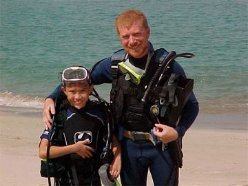 Visited Oman at the beginning of June 2001 and my daughter Yanni did her first sea dive (above) after weeks of pool training.
