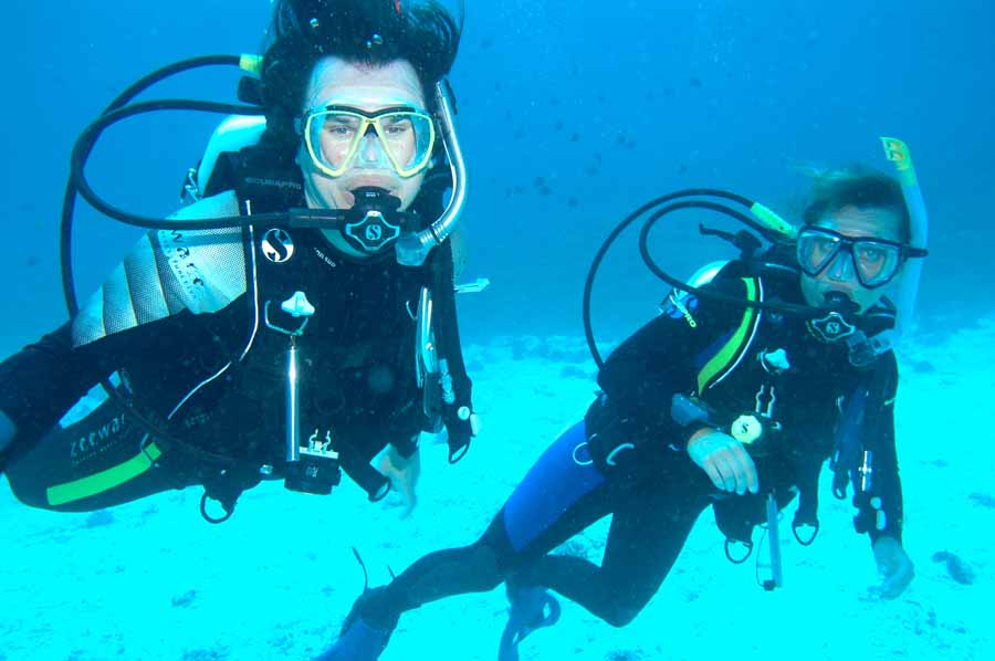 Above: Christian and Veronika during a dive at the Damaniyat Islands in Oman, 2005