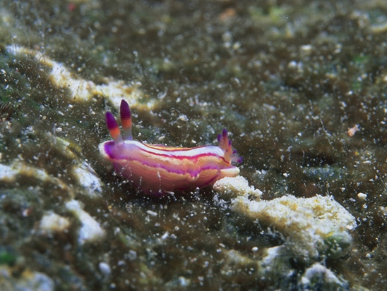 A tiny 5mm length nudi, found in the shallows at Norht Obhur, Jeddah, Saudi Arabia.
