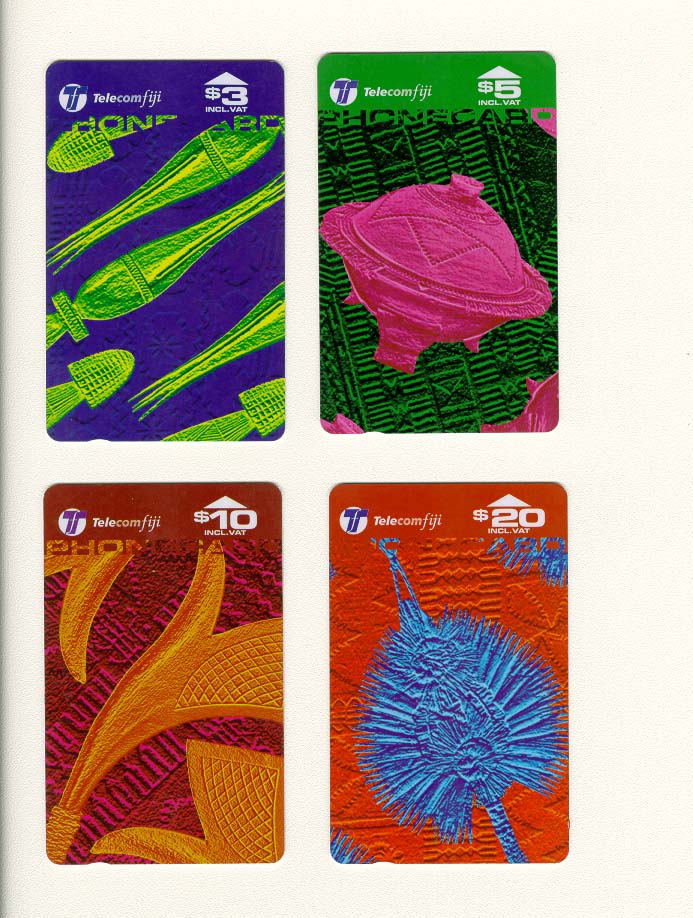 These cards were collected while I was a teacher in Fiji as a Peace Corps volunteer and later as an ex-patriot worker. Many of the rarest cards were found by my "gang" of street boys to whom I offered 10% of the face value for the blank cards they found left in telephones or in trash cans. I welcome your e-mail. However, I have limited my collecting to Fiji phone cards and do not want cards from other places. Although I have more cards than are illustrated here, these are (in my opinion) the more attractive or interesting of my collection. Contents: Fiji Post & Telecom