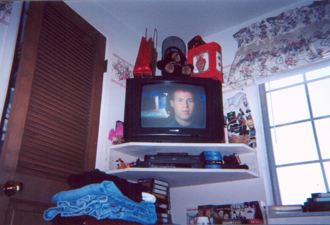 This is the North West corner of my room where my TV and stuff is. I took a picture of Ashley from OTown cause he looked soo much like my friends Ex Billy.. so yep thats one side of my room.. it's been the same since 3rd grade. LOL!