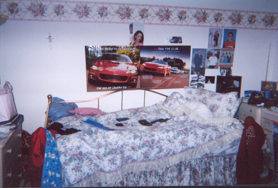 Yep this is the East side of my room, the bed is full of crap but oh well. It's just got school stuff, cell phone, 2-way pager, etc. But yep, that's where I sleep.