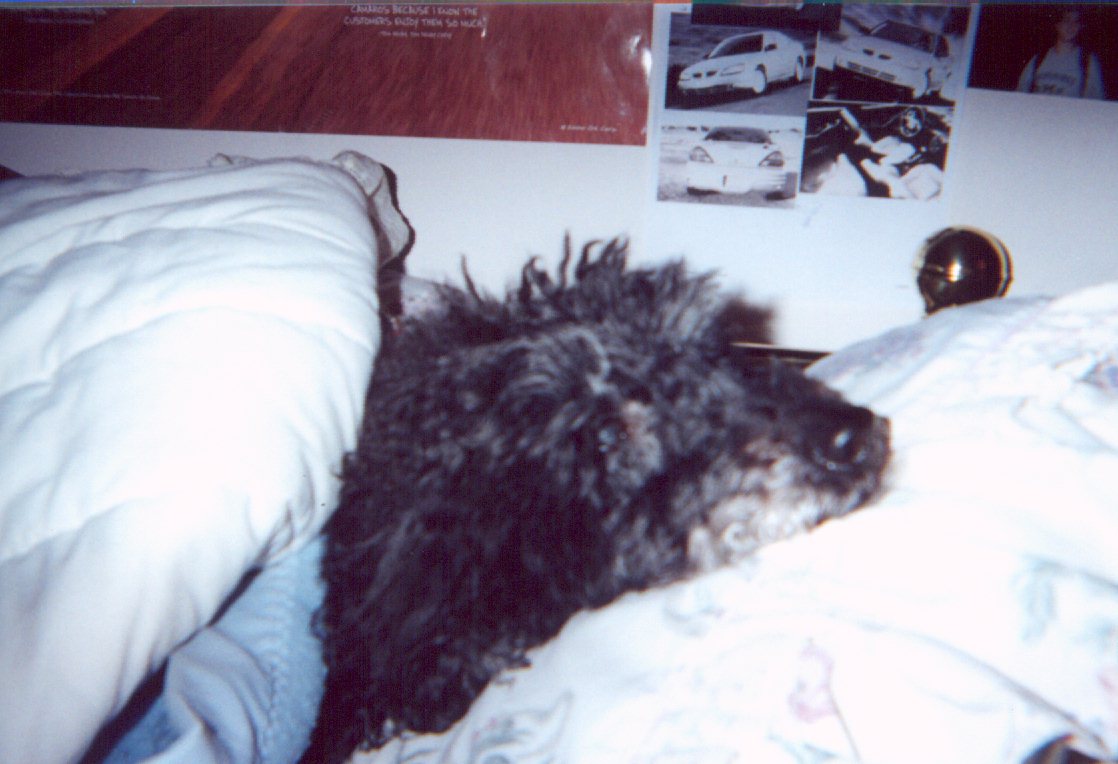 AWW! This is my baby!! She's 13 years old now :o) I always cover her up in my bed. Infact Susie takes up the whole thing at night and I'm left uncomfortable and in the corner against the wall and bars! LOL :oP