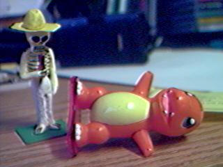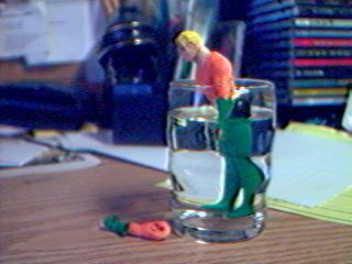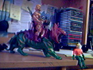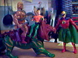 Poor guy. He's delusional. Here's more or less his first adventure in my dorm room, as he meets just a few of my other figures.