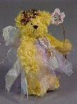 | Fiona the Frazzeled Fairy....1st in a possible series of "Frazzeled Fairies", Fiona has a hard time keeping it all together. Her magic wand is slightly bent (I suspect she sat on it, but won't admit to it), and her head wreath has slipped over one eye. As you can she, someone or something has been nibbling on one wing and she has to wear her fairy dust in a bottle around her neck as she keeps misplacing it. She will still grant wishes and work her magic, but beware, it doesn't always turn out as it should. Fiona is made from gold curly rayon, is fully jointed and stands 4" tall. $95.00 |