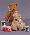 | Roscoe & Buford...Roscoe (standing) and his friend Buford are made of viscose with synthetic suede paw pads and black onyx bead eyes. Both are fully jointed and wear silk ribbon around their necks. Roscoe is 3 1/4" and his shy friend Buford is just a tad under 3". $50.00 ea or both for $95.00 |