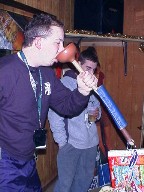 ![]() Beverton Lint Trap and Me Like'm Chubby play a game of beer-pong. |