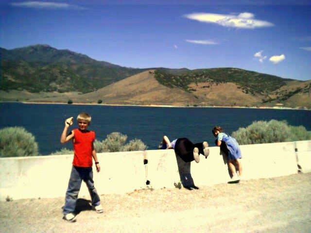 | Deer Creek Res. Near Provo Utah. This has a funny story to go with it. We were taking pics and throwing rocks down to the water *nothing but trees couldnt see waters edge* and one of the kids jumps up on the cement divider to see someone at the bottom, holding his head and looking up *grins* needless to say we promptly left... |