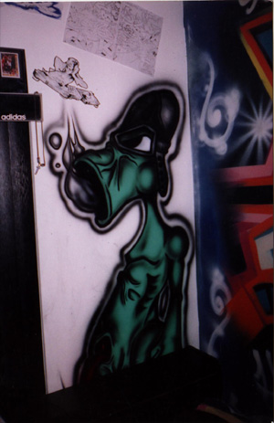 IN MY BEDROOM IT WAS THE TAG "WREK" IN 1994. IT WAS FUGLY.
