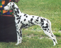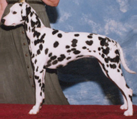 Max is a litter sister to Carly. She won her first points at her first show from the 6-9mo. puppy class. She won second place in futurity at the ’98 Dalmatian Club of America’s National