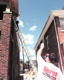 Roger Templeman, owner of Brightmoor Restoration & Investment Groups, directs workers who are repairing Aiken's home