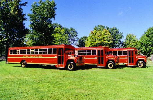 Year: 1979, 1980, 1982 Model: Wayne "Lifeguard" Conventionals with 392 gasoline engines and hydralic brakes Owner/Operator: Dover Millionares Racing Location: Thyrone, Pennsylvania Notes: Dover Millionares take their buses to the bus races in Dover, Delaware. Two of the buses are out fitted with 18 bunks each. The other is used as a utility bus to haul around equipment. Once, the 1980 was in a major garage fire, but was rescued by the club. All three buses were previously owned by Beckwith Buses of Thyrone, PA. Photo By: Chad, of Dover Millionares |