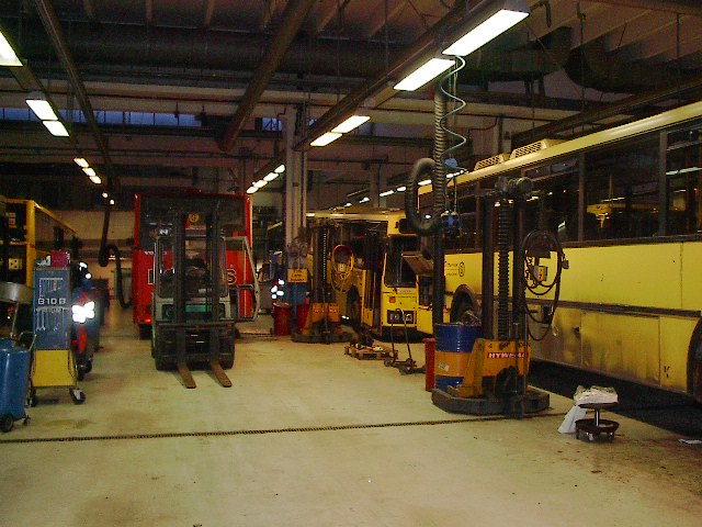 Note: The buses in the first photo are at the bus lot for Gaia Trafikk. The other two are in the workshop.