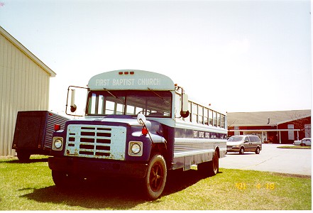 Year: 1983 Model: Thomas International Conventional Church Bus Owner/Operator: First Baptist Church of Lake Orion Location: Lake Orion, MI Notes: This bus was for sale at the time. First Baptist also has another very nice church bus. Note the multiple emergency exit windows and the lack of padding on the rear of the seats. This bus was just sold on Friday, September 7, 2001. Photo By: Mike (The BusBoy) 4/18/2001 |