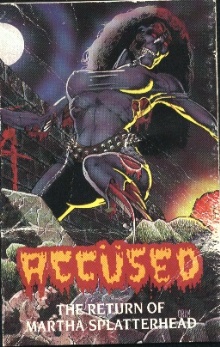 "What a beautiful day to get a new tape", I thought to myself. I stood inside the local record store with $10 in my pocket to spend. I looked around at various tapes but nothing seemed to appeal to me. It was then that my eyes feasted upon the cover of "Return of Martha Splatterhead" by THE ACCUSED (not the orinigal LP B&W cover art but the beautifully illustrated one with Martha in all her knife wielding glory, bulging breasts and all).