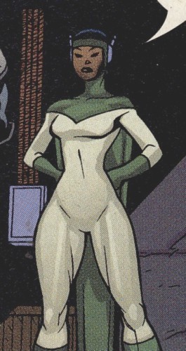 -Invisibility: If she stands very still, she can seem to fade from view by turning his body so she stands sideways to a viewer. This is of limited use (and only effective against viewers on her right and left), but it allows her Gd Invisibility against viewers who are actively looking for her, Ex Invisibility to opponents who are unaware of her presence, and Rm Invisibility when sneaking past an other wise distracted viewer.