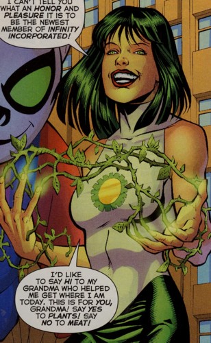 Plant Generation: In ability to produce vines from her fingertips, used to ensnare her victims