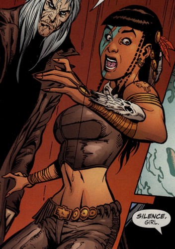 Staff: Am material, the staff is able to summon the spirit of Manitou Raven, her deceased husband