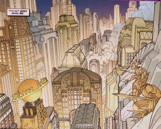 Home of Superman and known as the City of Tomorrow by its residents; truthfully, that's actually not too far from the literal truth. Located near New York City and Gotham City on the United States' east coast, Metropolis is divided into six boroughs, and occupies three islands and areas along the coasts of the Hob's and West Rivers. On islands are the boroughs of New Troy, St. Martin's Island, and Hell's Gate. On the riverbank is Queensland Park along the West River to the south, and on Hob's River to the north are Park Ridge and Bakerline. New Troy, on the center island, is a center of business, like New York's Manhattan. It is home to the University of Metropolis and Centennial Park on the west side; and the Daily Planet, the LexCorp Tower, the Newstime building, and Galaxy Communications in the eastern business district. New Troy also has a less prosperous neighborhood called Hob's Bay, commonly known as Suicide Slum. Metropolis' nickname is the 'Big Apricot'.