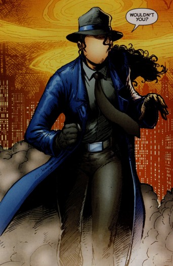 A special side effect of the gas is it temporarily changes the color of the Question's hair and clothes. An observor studying the Question can determine there is something unusual about his hair or clothes by making an Intuition FEAT vs. Am Illusion.