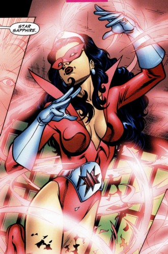 Star Sapphire: Am material, all of Star Sapphire's powers come from the jewel located on her forehead. She is able to perform the following power stunts: