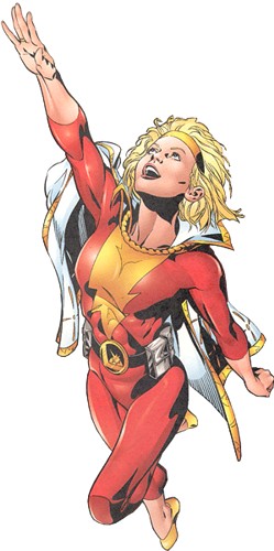 -Alter Ego: By speaking the magic words, "Captain Marvel," she summons a magical bolt of lightning that supercharges and transforms her. Since the bolt strikes wherever she is standing when she says the word, anyone at ground zero is damaged by In lightning. Cecebeck is immune to any damage from this lightning. This also causes Thunder to revert back to 10 year old Cecebeck who has the abilties as shown above.