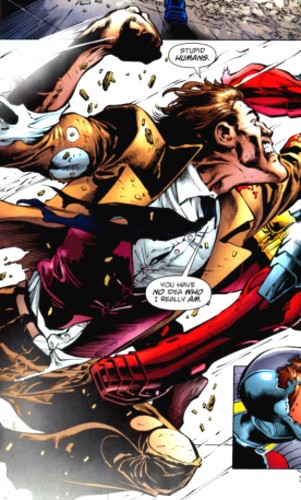 Vulnerable to Magic: Against attacks of a Magical nature, Tor-An's defensive stats are reduced to Pr (ie. Endurance, Invulnerability, etc.). He cannot use his powers or abilities to affect constructs of a Magical nature (he couldn't smash down a magical wall, or break enchanted chains with his strength).