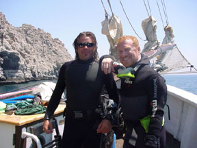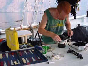 Above: Me preparing one of my cameras, and on the left looking suitably refreshed after a good day's diving.