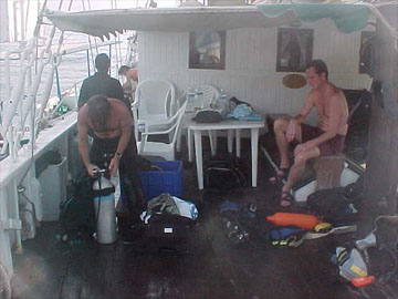 The evening was to become 100% social, no diving, just the usual predive chat that bonds people together, I was the stranger, however I felt most welcome by this motly bunch, which was probably just as well considering I was to share cabin with three of them.
