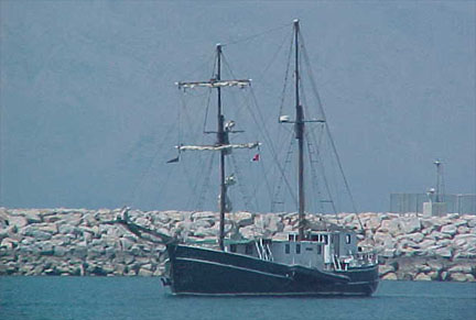 I arrived as the Charlotte Anne was approaching Dibba Harbour around 14:00 hours, and was the first aboard as an advance party with tanks and spare gear for the trip. The rest of the gang arrived between 17:00 and 18:00 hours, and as we set sail celebrated Bran's birthday.