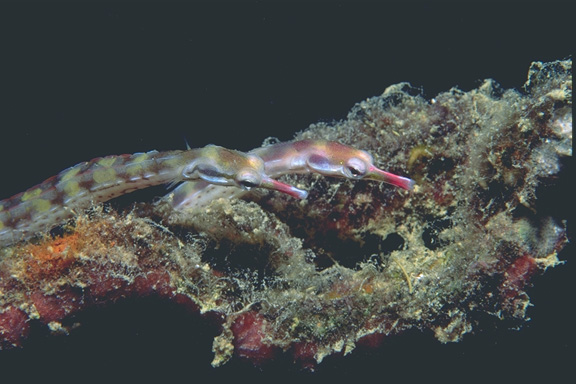 Two pipefish Corythoichthys sp. photographed on a jetty anchor chain at Andulus Playa, Sharm Obhur, Jeddah.