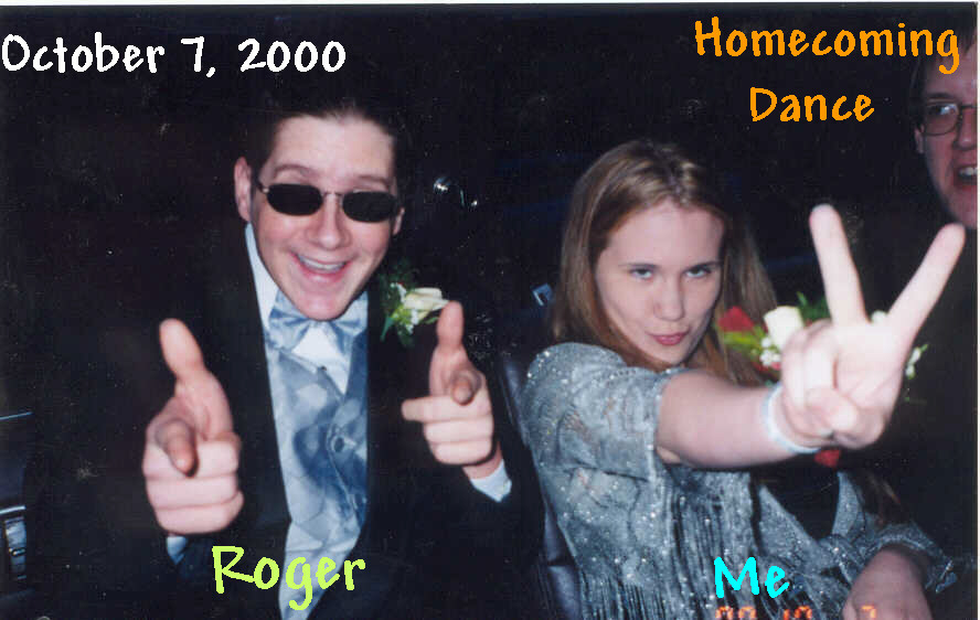 A picture of Roger and I goofin' off at the homecoming dance